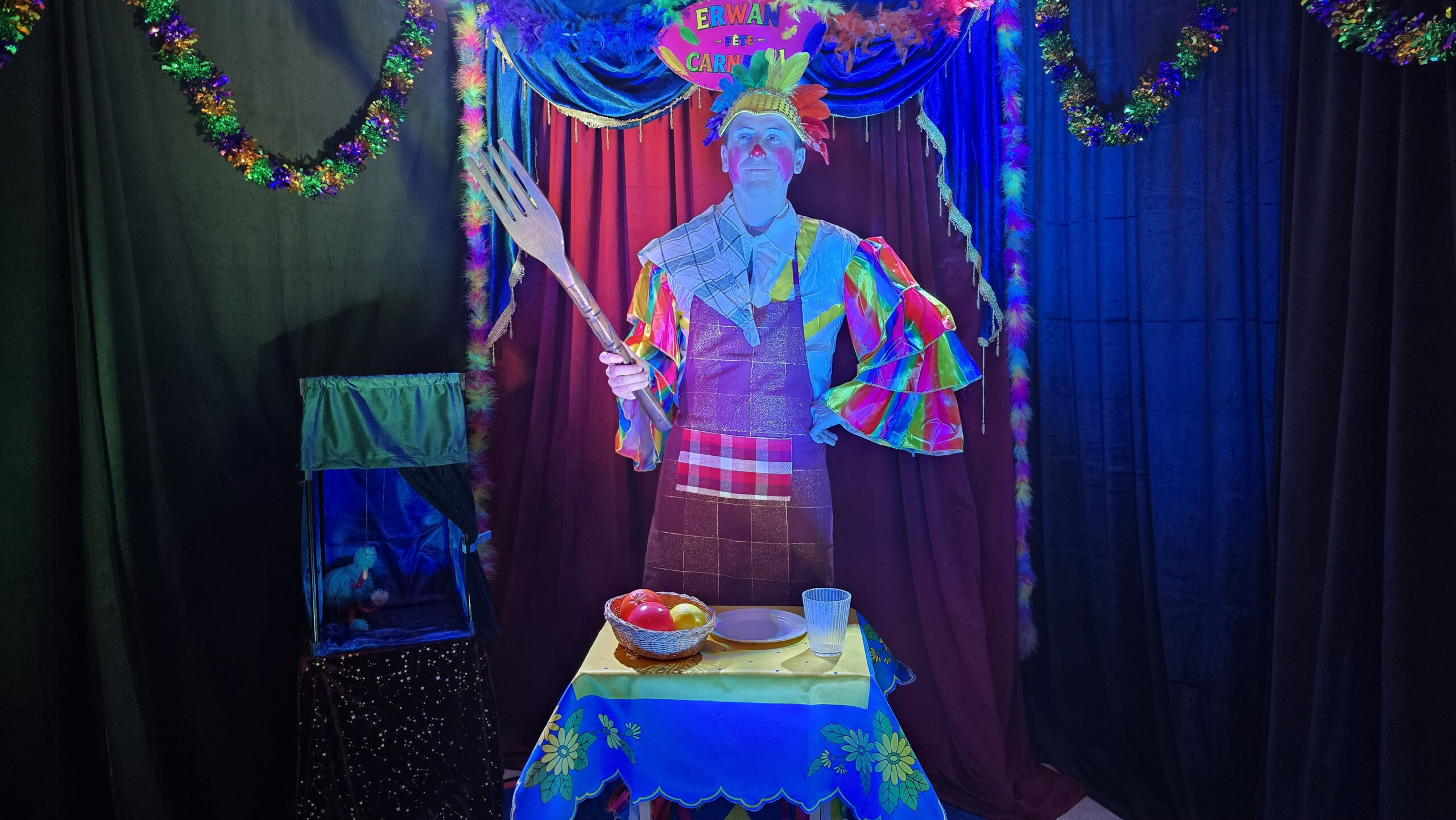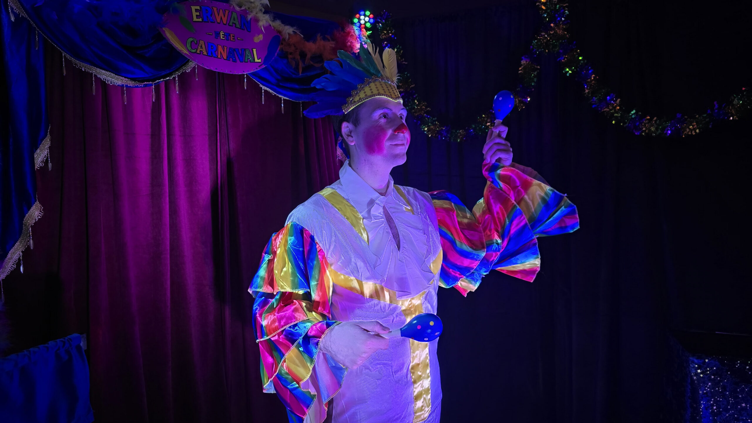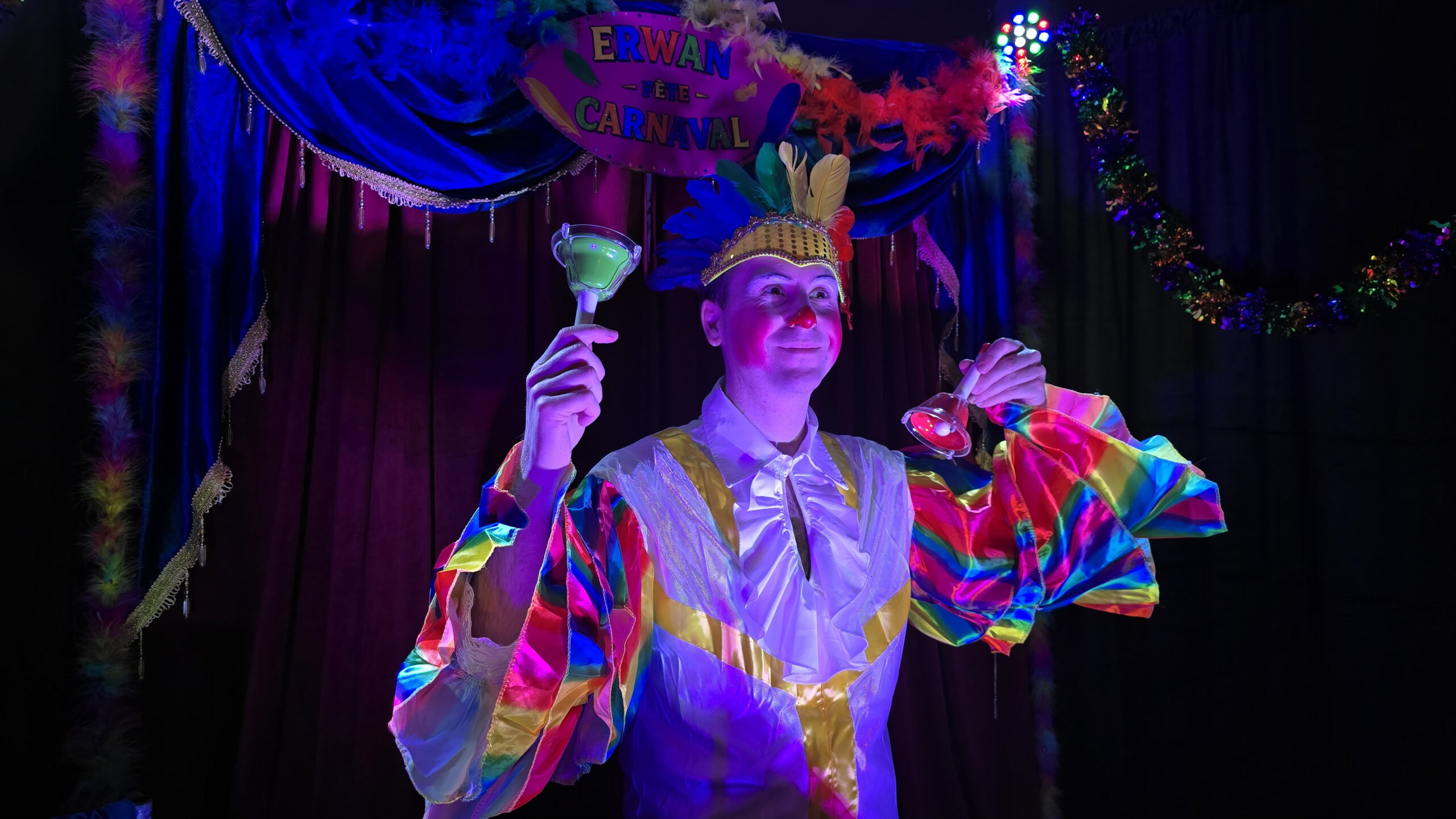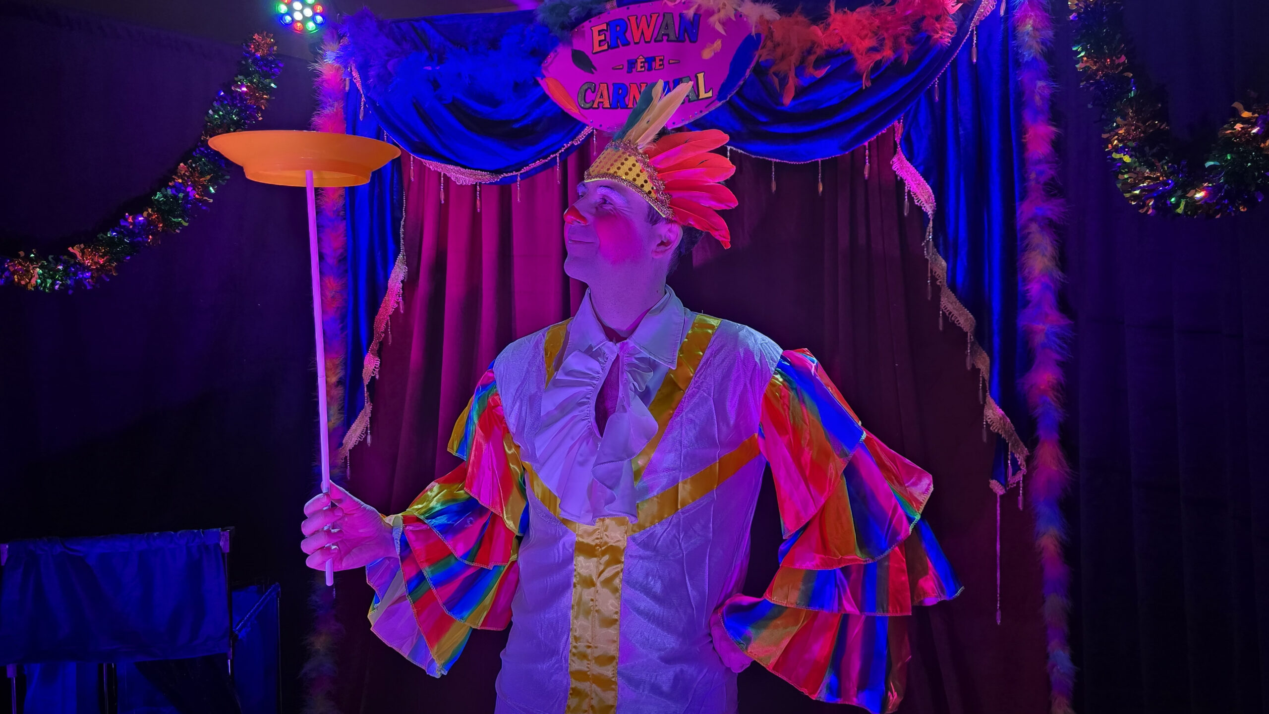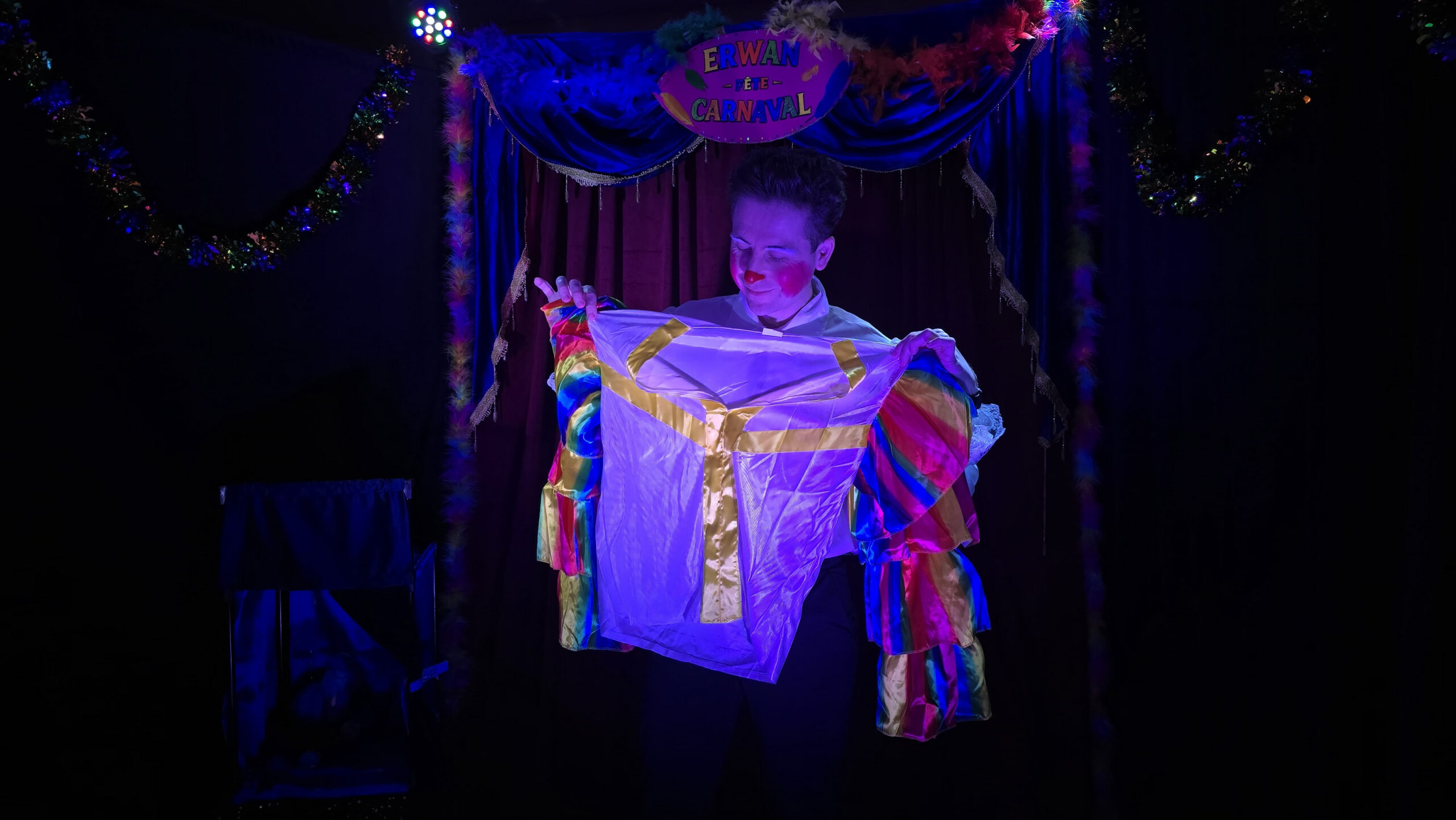 ✨ Totalement autonome en son et lumière, le spectacle s’adapte à toutes les salles, petites ou grandes. Il ne vous reste plus qu’à accueillir les enfants déguisés, Erwan s’occupe du reste.