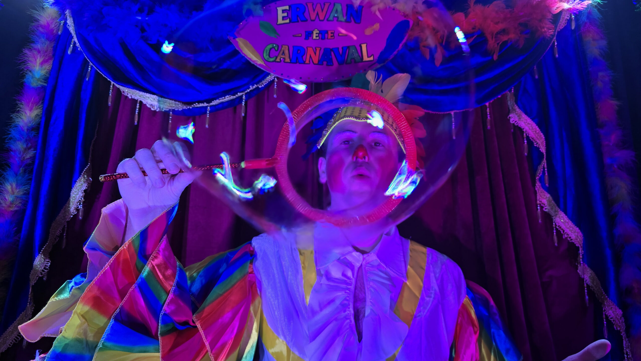 Préparez-vous à vivre un Carnaval haut en couleurs avec un spectacle de cirque enfant et familial et interactif, mêlant clown, jonglerie, équilibre, magie, bulles de savon géantes et surprises visuelles à faire pétiller… de rire !