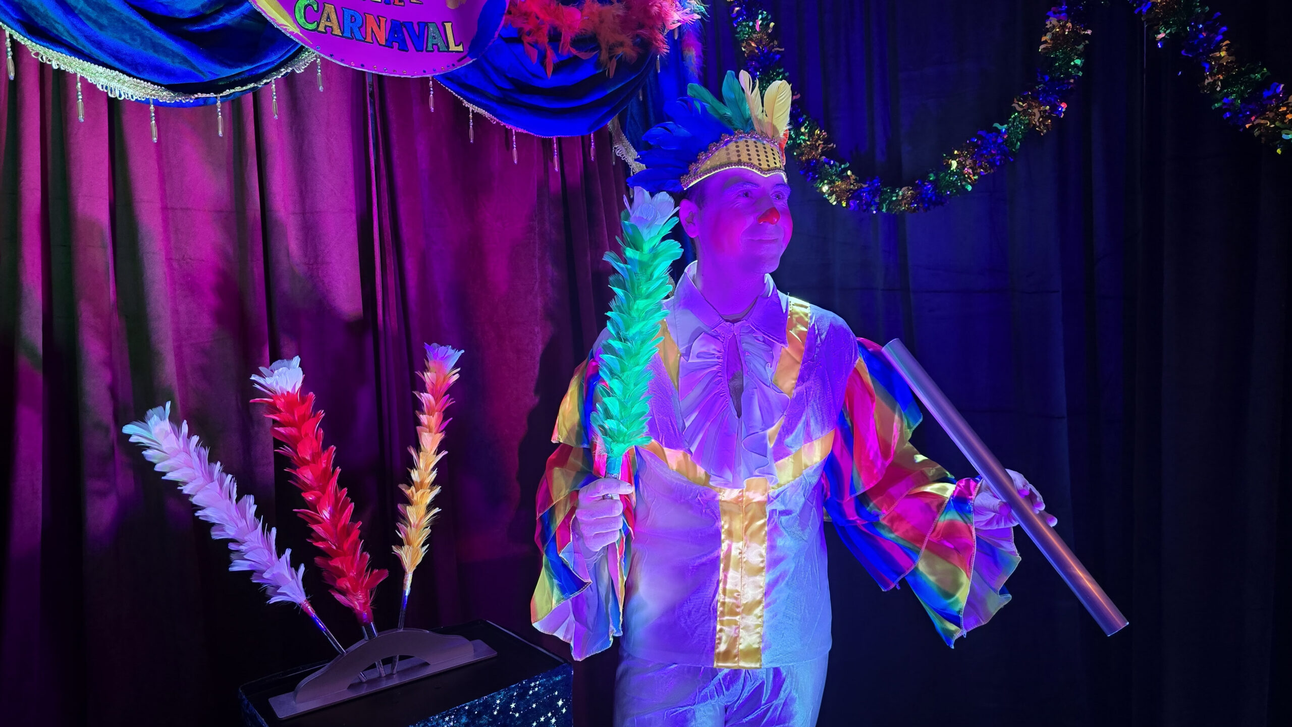 Plongez dans un univers vibrant où, le temps d’un spectacle, tout devient possible grâce à la magie du Carnaval. Un spectacle interactif et participatif qui vous fera éclater… de rire !